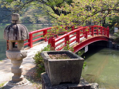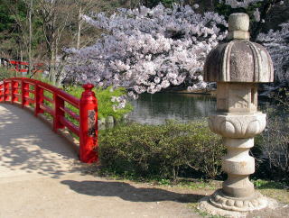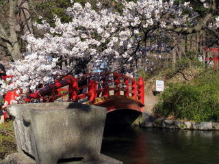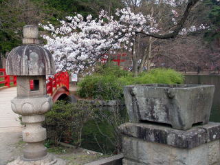 春は桜に引き立たせている赤い弁天橋に気を取られていて手水石と灯籠は案外気がつきにくいと思うが見る想像する価値があると思われる。