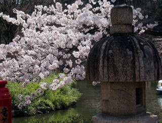陰る灯籠と桜
