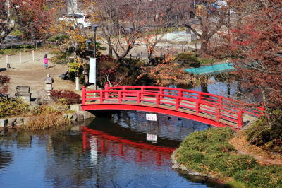 弁天橋を渡って紅に思慕し