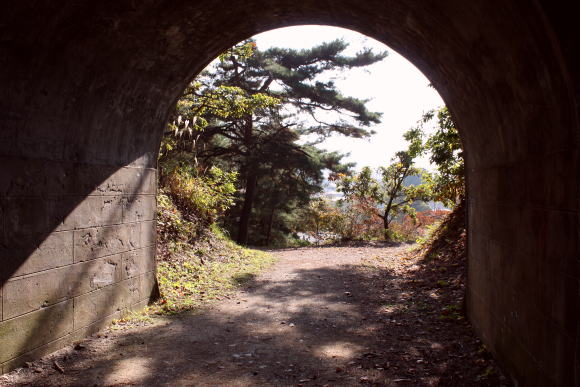 臥竜山と須田城址山の中間にある観世音橋付近の風景等