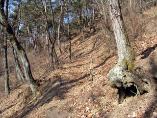 少し崩れる斜面