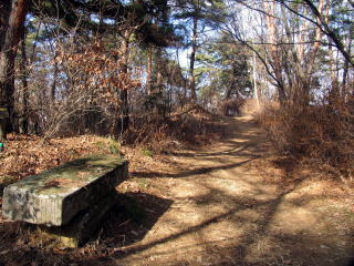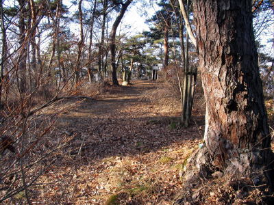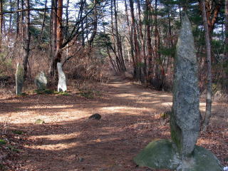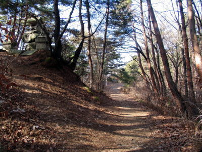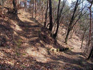 中央の斜面の山道へ
