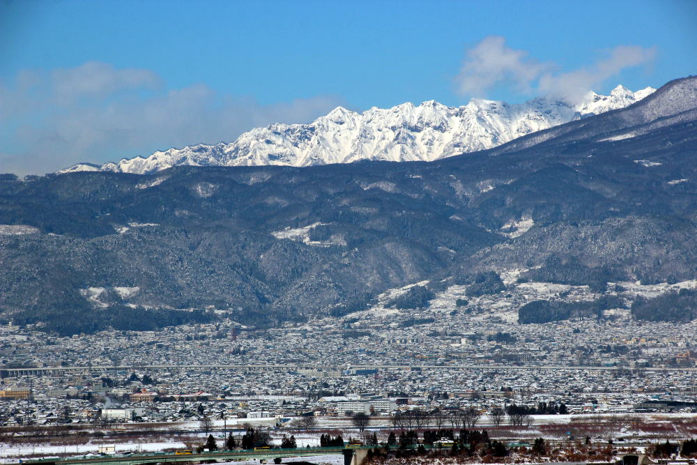 遠くに北アルプス