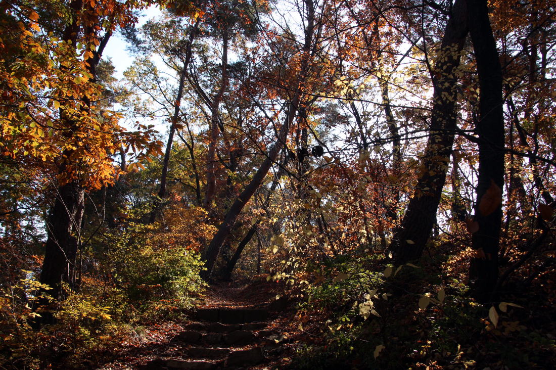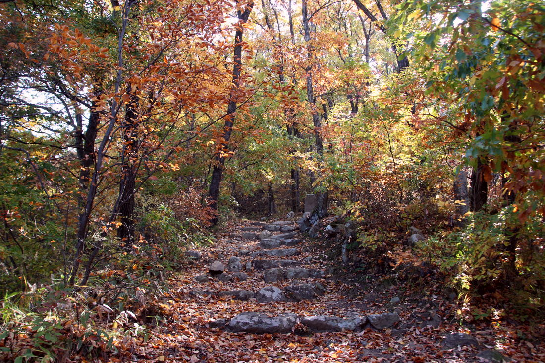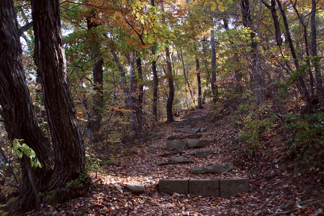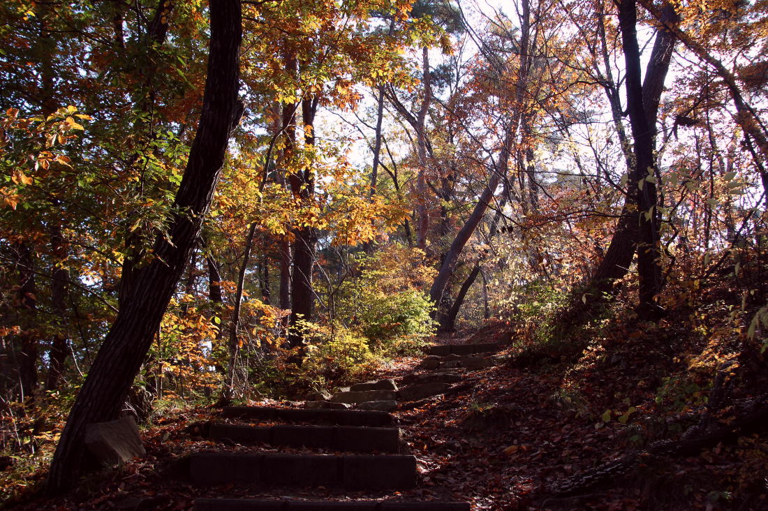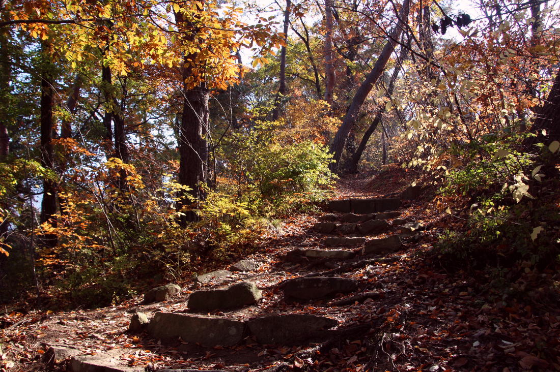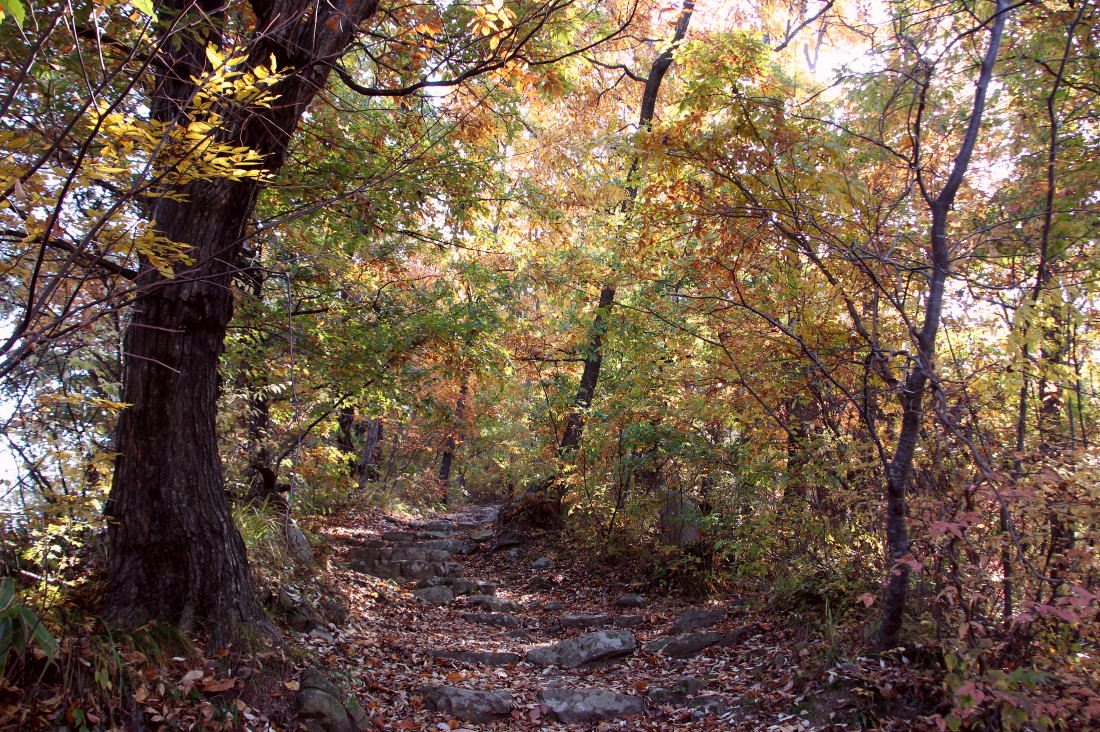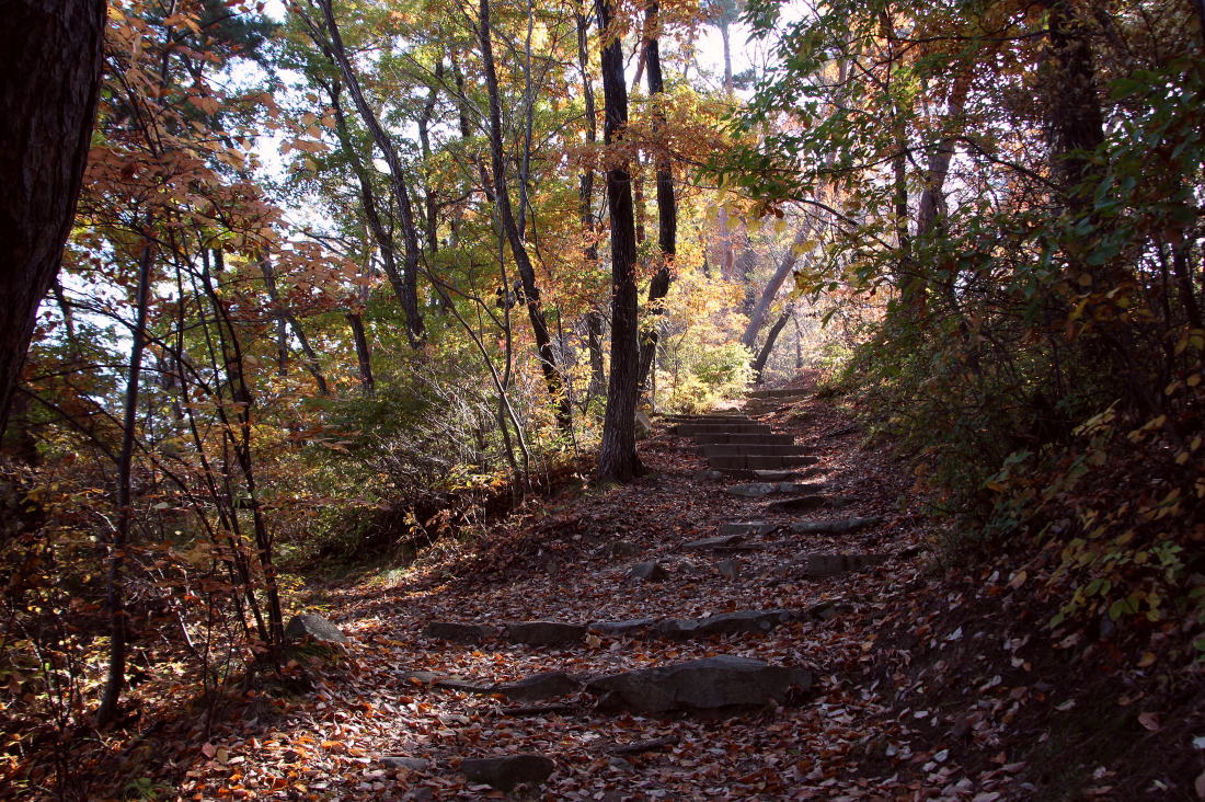 広い石段を確実に登って行く