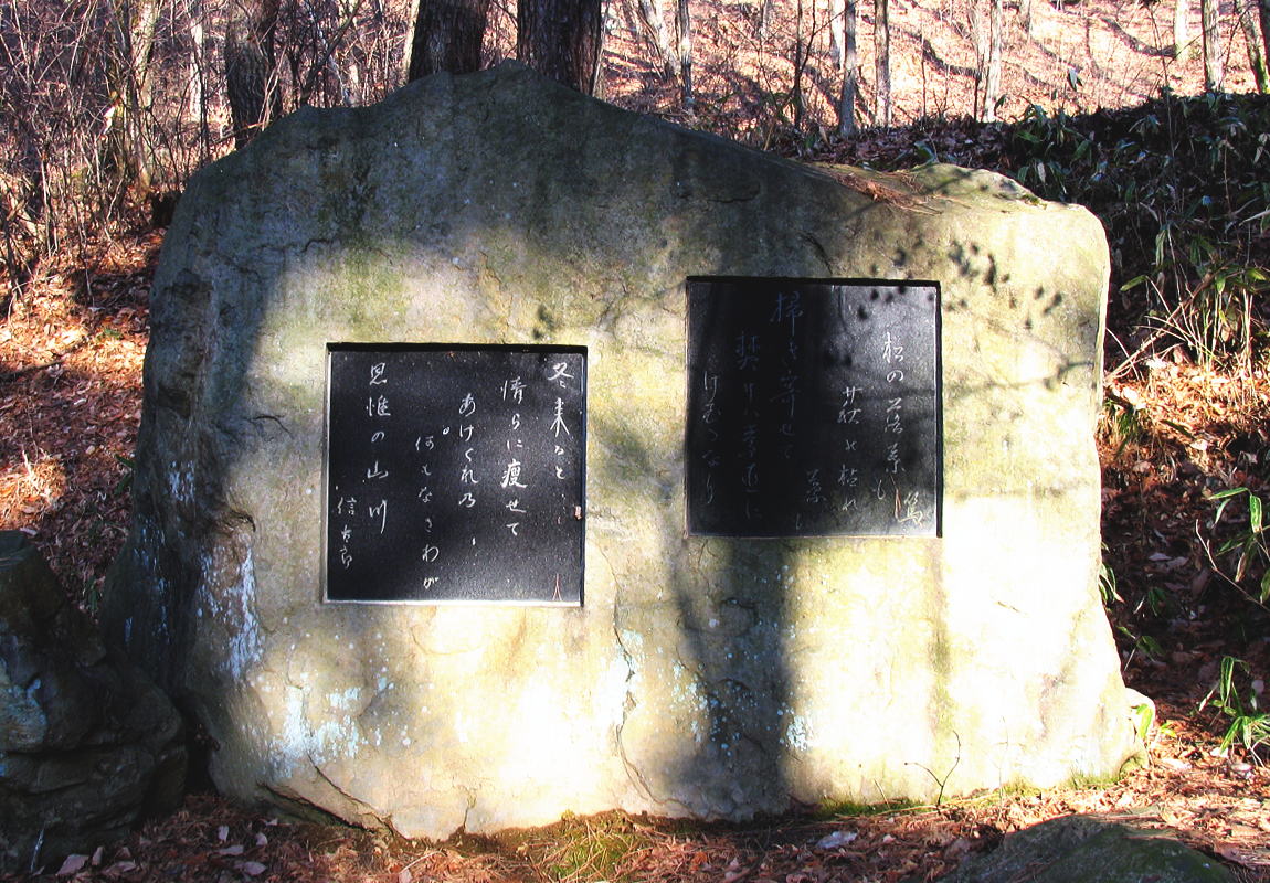 ◆臥竜公園の池から広々とした道を登っていくと、両名の歌碑がある。ここに寄って臥竜山を散策して短歌を詠みましょう。