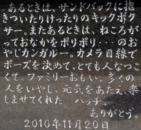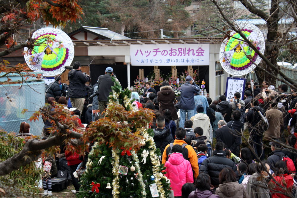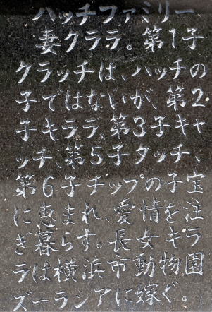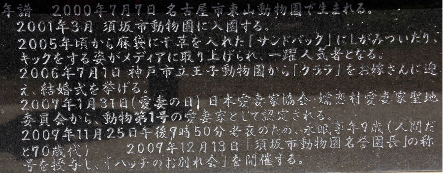 物凄い数が張られているのには圧倒されたね。写真を撮った後でも物凄い花がいつまでも置かれていた。小生が詩歌を詠まなくとも十分過ぎるほどの名文句がずらりとあるから、読んでいたら時間があっという間に過ぎてしまっな。でも全部は読む事が出来なかった(-_-)。この日だけは小生も無邪気に動物園で楽しく悲しく徘徊させてもらいました。 ☆人気者ハッチよサラバ!!