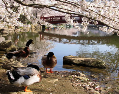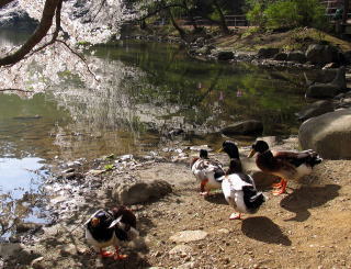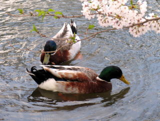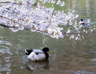 竜ケ池に鴨が屯していると何故か絵になる。特に春の桜の咲くころは見事にマッチして鴨が生き生きと感じられる。