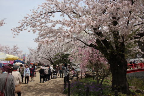 「賑やかさ 鯉に鴨も 花の水辺」・・・雲劉