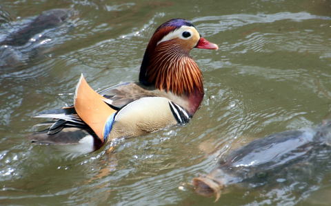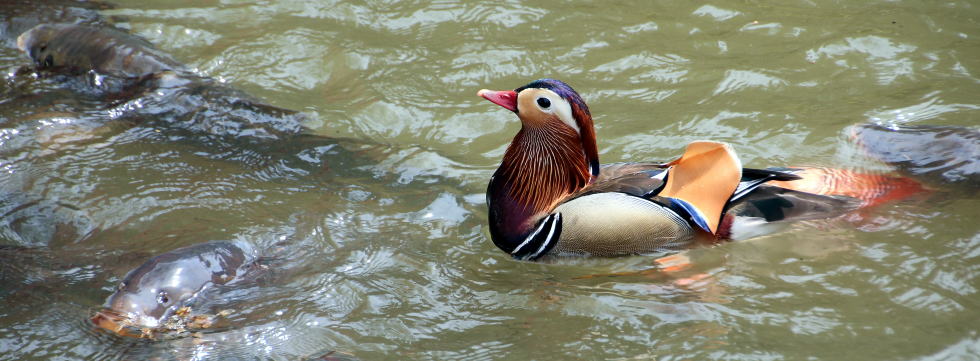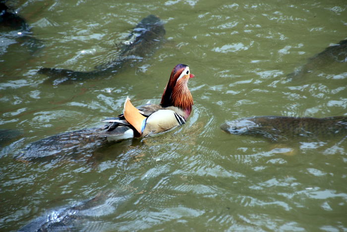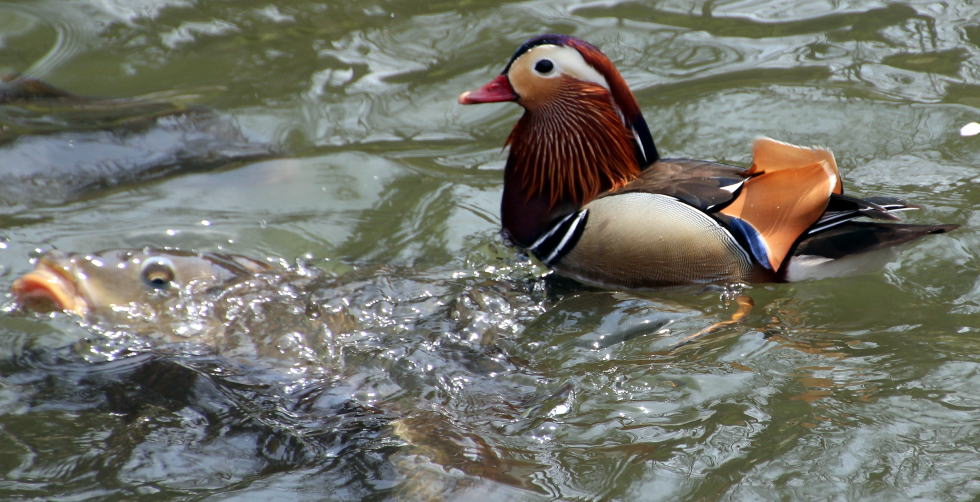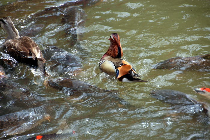 「花餌に 必死な鯉と オシドリかな」・・・雲劉