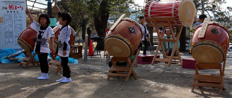 「太鼓鳴り 菊花賑やかへ 童たち」・・・雲劉