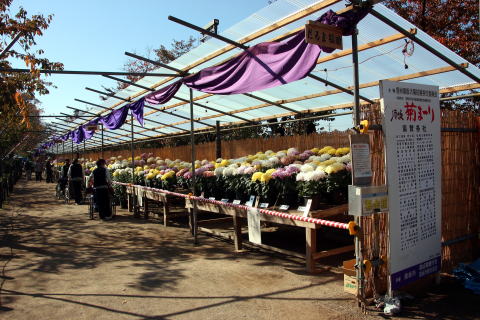 「菊花展 晴れの舞台は よしず張り」・・・田中竹子