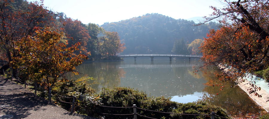 暖かく雅さの風が爽やかに吹かれている竜ケ池