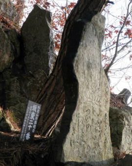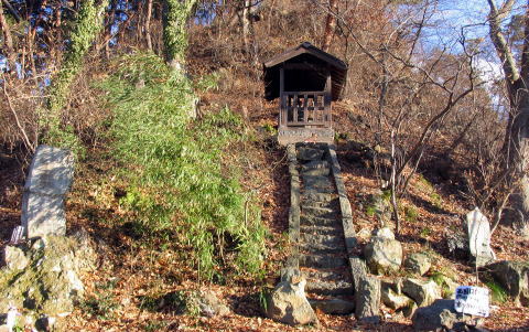 須坂市動物園入り口から左手に歩いて城山口の表示柱から階段を登って左にUターンする所で立ち入り禁止の看板方向へ歩いて左に軽く曲がると開運地蔵尊社があります。さらにこの奥には西国12があります。四阿から開運地蔵尊社当たりには下記の百番観世音地蔵様があります。
