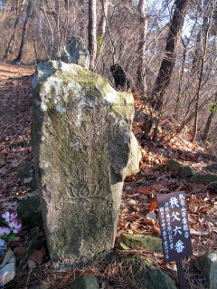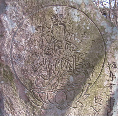北口登山道を登って行くと遊歩道沿いに多くの百番観世音地蔵様が建立されています。その中腹当たりの観世音様を割り引いて載せています