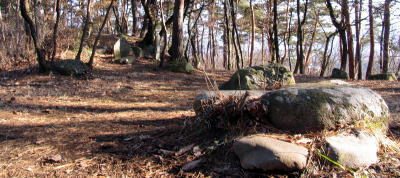 北側の臥竜山山頂から南へ下って、西からの観音橋から東へ歩いて合流する分岐点の前方当たりが松尾台です。