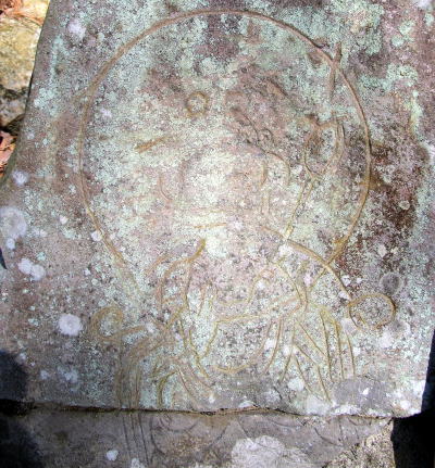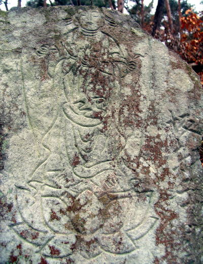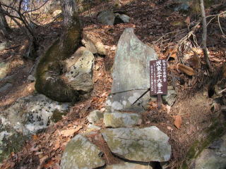 須田城址山とあずまやとの間で、東屋から城山へ向う途中で右斜面へ入り込むと百番観世音様があちらこちらにある。