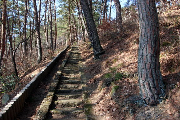 真っ直ぐ登ってきた階段が右折する所で息を調えて観音道へ向かった
