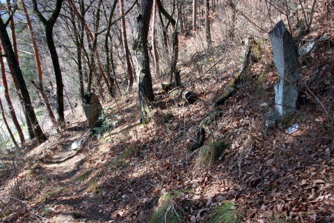 登り返して歩く 登ったところにある板東33番、ここから見上げると西国26番2が崖の上に見える