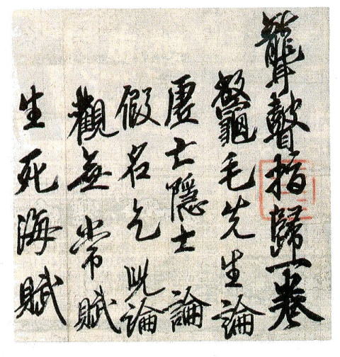 このページの「 仙術を学ぶ者は唾液ももらしてはいけない。大笑いや極度の怒りは生命を損なう。仙術を体得し、天地とともに長く生存する境界を楽しもう。最後にぼろをまとい、やせて顔が土鍋のような仏教修行者の仮名乞児(かめいこつじ)。この世に自分の家はありません。私たちは輪のように生物の間を迷いながら生まれ変わっている。すべては変化していく無常なもので衆生を慈しむ仏陀(ぶつだ)の本願は限りなく深いのです。 仏教の優位を明らかにする24歳の仮名乞児は最後に「十韻の詩」を作って一同に歌わせる。--川の流れは常に流転してとどまることがなく、つむじ風は音をたてて消えていきます。この世はすべて無常であり、迷いの海であり、自由をさまたげる束縛である。官位など捨て去らないでよいものでしょうか--この「十韻の詩」は青年空海の出家宣言を示したものとされ、仮名乞児も「若き日の空海を彷彿(ほうふつ)させる」 (松長有慶・前高野山真言宗管長の「三教指帰」解説文)。