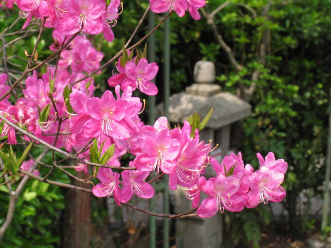我が家の庭にもゴールデンウイークにムラサキヤシオツツジとミツバツツジとクサボケが咲いた。葉も出ていない木々が立ち並ぶ庭であったが花が咲いて葉も芽吹いてきて庭が賑やかになって狭苦しさを感じた。それでも我が家の庭にも春が来たのだと思うと そわそわしてしまう。