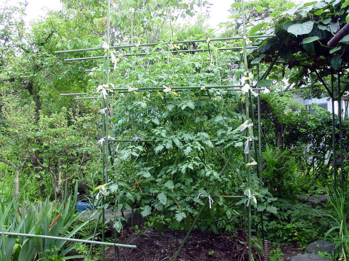 庭に植えた1本のトマトも高さ2mぐらい大きくなって沢山トマトがなる