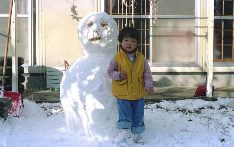 雪だるまと仲良しの我が息子