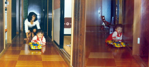 我が家の廊下で遊ぶ息子