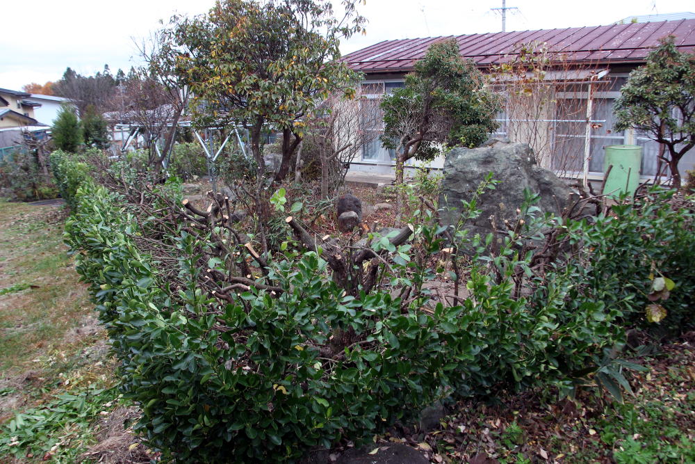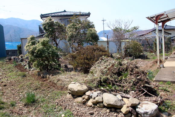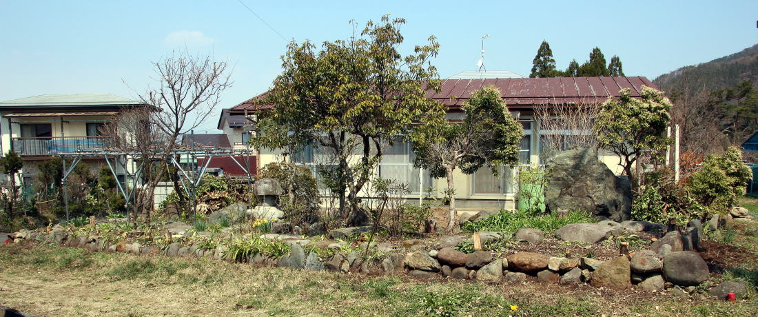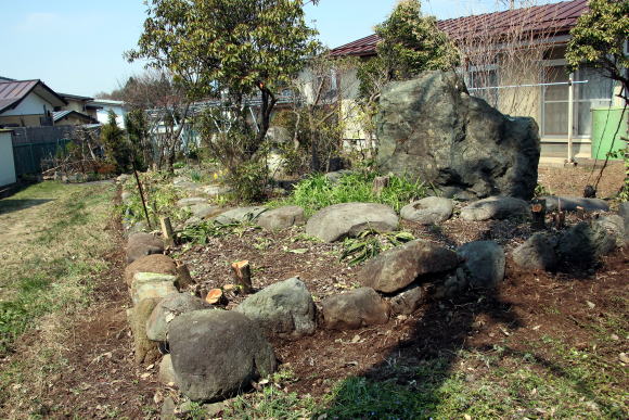 2020-04-10 ◆生け垣を全部切り倒す 毎年生け垣の手入れに時間をかけてしてきたが、老いる先を見つめると体力が衰えてできなくなる恐れがハッキリしてきているので、自分の創作で造った深山渓谷的な庭園を惜しみながら思い切って「まさき」の生け垣を全部切った。切って見ればさっぱりして私の脳が明るくなったような気がした。これからは生け垣の手入れ時間が無くなったのである。秋からは生け垣の切った枝の始末の作業も無くなるのだ。生け垣は昭和49年に植えた。それから45年間手入れしてきた生け垣が無くなってみると寂しいようなうれしいような複雑な気分が脳裏に漂っていた。若き頃に庭の教科書、日本庭園・露地茶庭をミックスして好みの所を取り入れて生活としての味も取り入れて敷地内に独自の庭を作った。これから庭を造る人、観賞する人の参考になればと、その内容の一部を我が家の庭の写真の間に乗せてみました。順番はランダムです。 ◆2020-04-08撮影