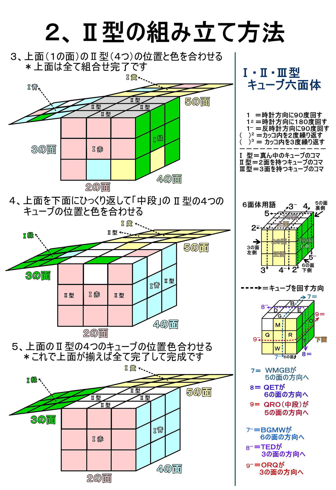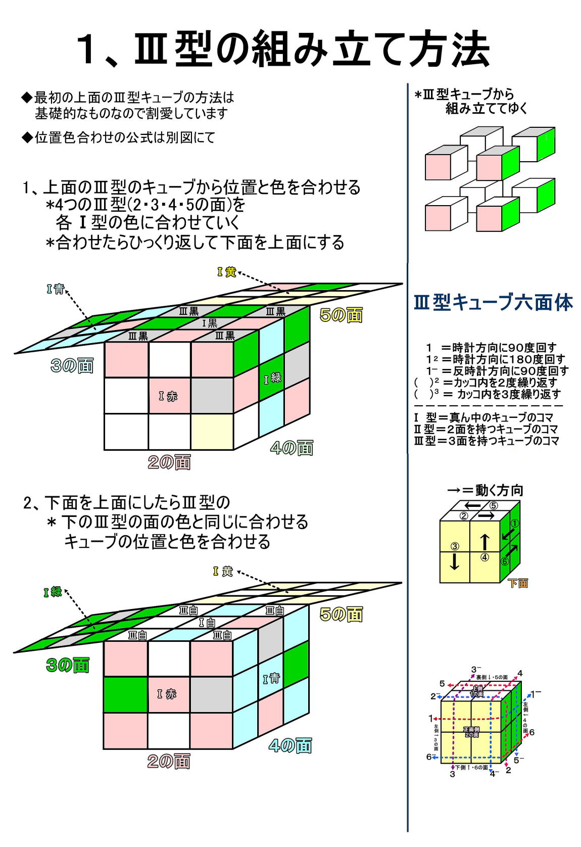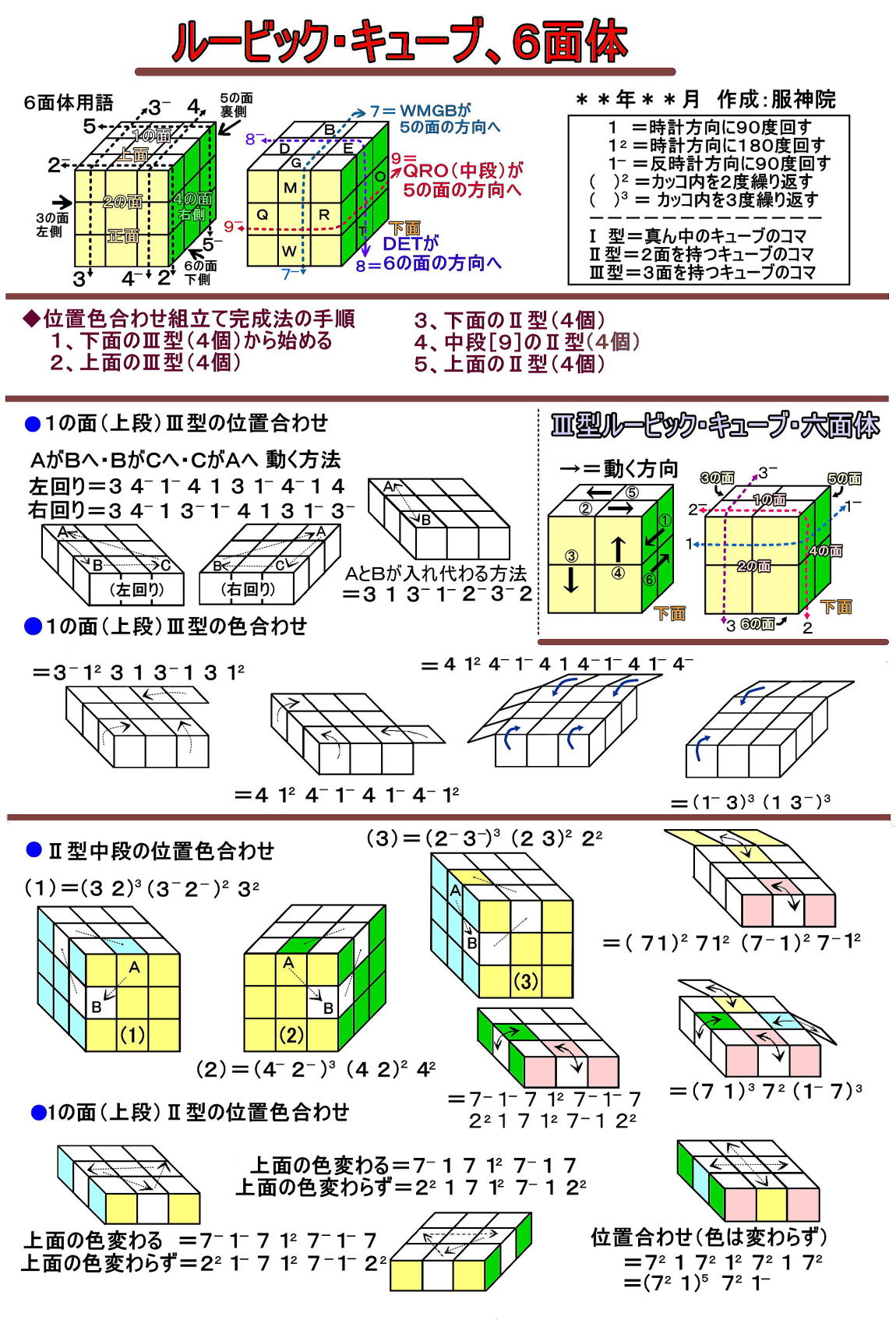 昭和56年(1971)頃にルービック・キューブが流行った。組合の斡旋で早速アイテム(ルービック・キューブ、6面体)を買って自宅や会社で熱中してクルクル回して完成させていた。最初は全くできなかったが、「なぜ」と自分に問いて理解させて回して書きしるしていくうちにできるようになった。本も買って見ながらするようにもなった。頭の体操にはなかなか良き遊び道具である。そんな完成させるための簡単な図を乗せてみました。 ◆基本