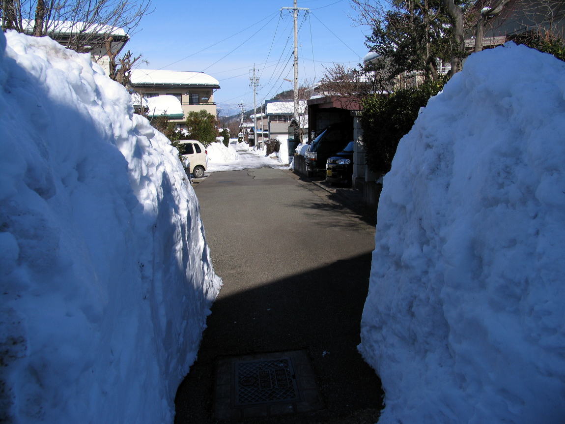 昨年の12月31日から我が家は30cmぐらい降った。1日の朝から雪片づけに追われていた。それからも大雪ではないが毎日雪が降っていた。そのたびに近所の住民は雪を市道脇に雪を積み上げたり自分の敷地に入れていた。我が家の駐車所と玄関の前の市道脇の側溝の所の雪の山を我が家の南側に持って行って積み上げた。市道(車道・側溝)も殆ど雪も無くすっきりとして気分爽快であった。 朝になってみると小生が車庫から愛車を側溝をギリギリにハンドルを切って出している所に雪の山になっていた。その雪の山を片づけて愛車に乗って用事に出かけた。帰って来たらその側溝の所が雪の山になっていた。こんなことが雪が降るたびに繰り返されていた。実のところ もう10年以上も続いているのである。 特に今年は大雪が多く小生も朝から夕方まで雪片づけの日々が続いた。大雪の降ったある日の朝に側溝側の所の雪を片づけていたら、片づけた所へ青さんが敷地内から雪を持ってきて捨てていた(青さんによる交通妨害の行為)。 小生はカーとなって 「この野郎!」 と怒鳴ったが平気な顔して敷地内から雪を持ってきてドンドン捨てていたので青さんに近づいて、 「自分の車が出られなくなるから ここには雪を置くな!」 「ここはあんたの場所じゃ無いぞ!公共の場所だぞ!置いちゃいけないのか!!」 と青さんは愚痴をタラタラこぼしながら徳さんの敷地などに雪をまき散らしていた。 鬼より怖い小生の妻が外に出たら青さんは 「ここに雪を置くなと旦那に言われた」 と妻に話しかけて側溝に積み上げた雪を敷地内に片づけていた。妻は青さんに向かって愚痴をタラタラと怒鳴り散らしていた。 「お前は雪を片づけているんではなく人の家へ持って行ってるだけだ!」 「こんなに大雪なのに なんでお前の所に雪の山が無いんだ!」 「お前は分からないと思って片づけた所へ 夜中に雪を捨てているんだろう、チャント分かっているんだからな! おまえ! おとなしくしているからと 舐めてんじゃねえぞ!!」 「お前は根性が汚い 公道の場はお互いに綺麗にするところだぞ 公共の場は雪捨場じゃないそ゛ お前は犯罪者だ!!!」 町から緊急の回覧が回ってきた。 [川に雪を入れられて、下で川が溢れて床下浸水が発生しています。川や側溝に絶対雪を入れないで下さい。消火栓や公共の場は住民でお互いに雪を片づけましょう] 1月末にまた30cm以上の大雪が降った。我が家のテレビが映らなくなった。屋根に上がってコードを見たら古くなっているせいかズタズタに切れていた。アンテナを支えている針金のところの雪を片づけいたら腰がギクッとなった。次の日になって立ち上がるのに苦労したがすぐに直るだろうと思った。その次の日になったら物につかまらないと立てなかった。そしてついに医者に行った。 妻は機嫌悪くなり鬼になってきた、 「いくら綺麗に雪片づけしたって、三軒の馬鹿どもが自分とこの雪を 片づけた所へ持ってくるから それをまた片づけいる、そんな事しているから体が疲れて医者通いなるんだ 馬鹿にされているんだぞ! 側溝の枯れ葉を片づけるとそこに猫の糞や枯れ葉を捨てる馬鹿がいる、それを家(うち)の亭主がまた片づけている、馬鹿にされている ここの奴らモラルが悪い 今度徹底的にやつけてやる」 いつものように市道と側溝の雪を片づけて愛車で出かけて帰って来たら徳さんの奥さんが雪を側溝の所に捨てていたので 「徳さんあそこに雪を捨てないで下さい。あそこは私の車が出る時 出られなくなります、 私の車が雪でガリガリとこすってしまいます」 「じゃ もっと奥の方へ雪を置いて良いんですか」 「もっと奥は 私の車を車庫に入れるとき困ります、徳さんの雪を私が雪片づけ所に置くなら 私の所の雪も徳さんが雪片づけ所に置いて良いのですか」 「・・・・・無言・・・・・」 「そんなことしていたら気分悪いでしょう、最近徳さんから回覧が回ってきましたよ、[川や側溝に雪を入れないでください 公共の場はお互いに雪を片づけましょう] 徳さんの市道の所の雪は徳さんの所で片づけて、私の所の雪は私の所で片づけましょう 自分の所の雪を他人の家の方へは持っていかないようにしましょう」 「分かりました」 と素直に徳さんの奥さんは答えた。 市道の向かいの二軒離れた猫のMさんも小生や妻がいない時に雪を持ってくるので雪を置いていく現場を見つけたら怒鳴りつけてやると妻は興奮している。