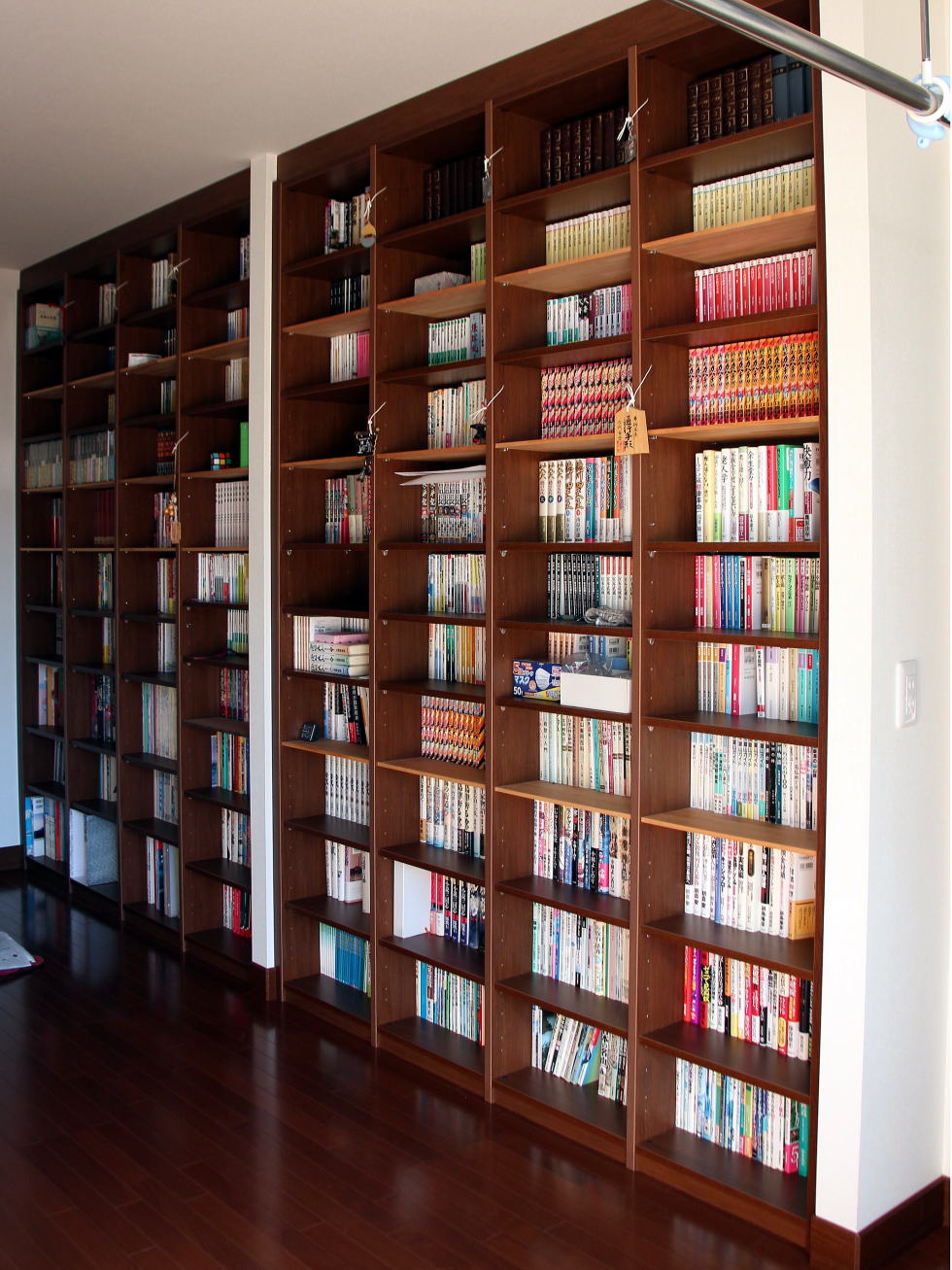 ★本棚について 新築計画に於いて本棚(書斎)を設けることは必要なことであろうか。人によっては全く必要は無い、本を読んだところで財産が増えるわけでもない。仕事で出世するわけでもない。ただ読むだけなら借り本で沢山だ。読んだ本をストックしておくことはムダなことである。お金のムダ遣いである。新聞や雑誌もとらない、必要な内容はネットから得ればよい。と合理主義的な発想の人々も多々いる。 ここでは読書方は避けるが、小生が感じるには本棚は新築時に小さくても部屋の一角にでも設けるべきである。本は一度読んで、ふと読み返すこともできるし、本の題名を見ただけで内容が脳裏に伝わってくるし、分からない漢字や意味を調べるには辞書類も本棚に収めておくと便利である。本は人間を豊かにしてくれる重要なアイテムである。僅かでもその本を所有することは、その家自体が教養あふれる豊かな室内に導いてくれている。新築時には是非とも検討して欲しいと願っている。 *国語の勉強をするなら本(小説・他)を読もう *数学の勉強するなら株投資(・・・)をしよう ★私の家、本棚 私も新築に本棚を作った。数は3ケ所にテレビ台の上の棚である。本棚は全て造り付けである。ただ住んでいるだけなら本棚は必要がないが、家で生活するなら、やはり本棚があるほうが生活レベルが上がると思う。それによって人間としてのゆとりある豊かな生活が過ごせる。ボケ防止にもなるでしょう。