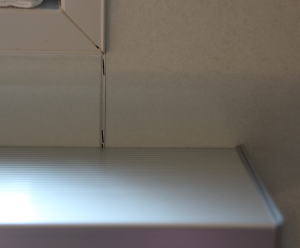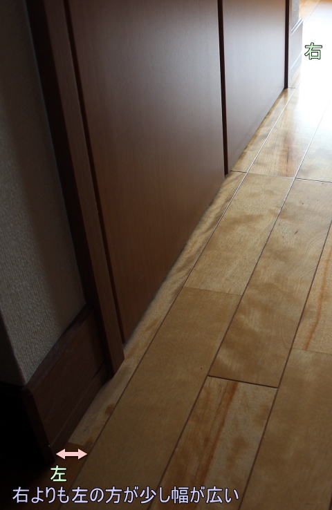 ●パソコン用の机の引き出し台の所に隙間が色違いに見えていた。また左右の引き出し殆ど全部が斜めになっていた。後日直してもらった。これもしかり、机等の確実な組み立てをする訓練・教育が不足している証拠である。 ●洗面所のエコハックス電気床暖房専用電力制御ユニットのコントローラ操作盤が同じものに統一されていなかった。後日交換して頂いた。一つの家の中で色々な操作盤が混在しているのは、見た目管理が甘く統一管理統制がなされていない証である。 ●新家を引き渡された夕方にお風呂にお湯貼りをして夜に外回りを見回ったらヒートポンプ式電気給湯機から お湯漏れが発生していた。即連絡して 後日にパッキンが合わなかったとかで直して頂いた。理由はともかくとして取り付けたなら必ず運転して確実に確認(チェック)して欲しいものである ●サッシの窓枠の角に隙間がある