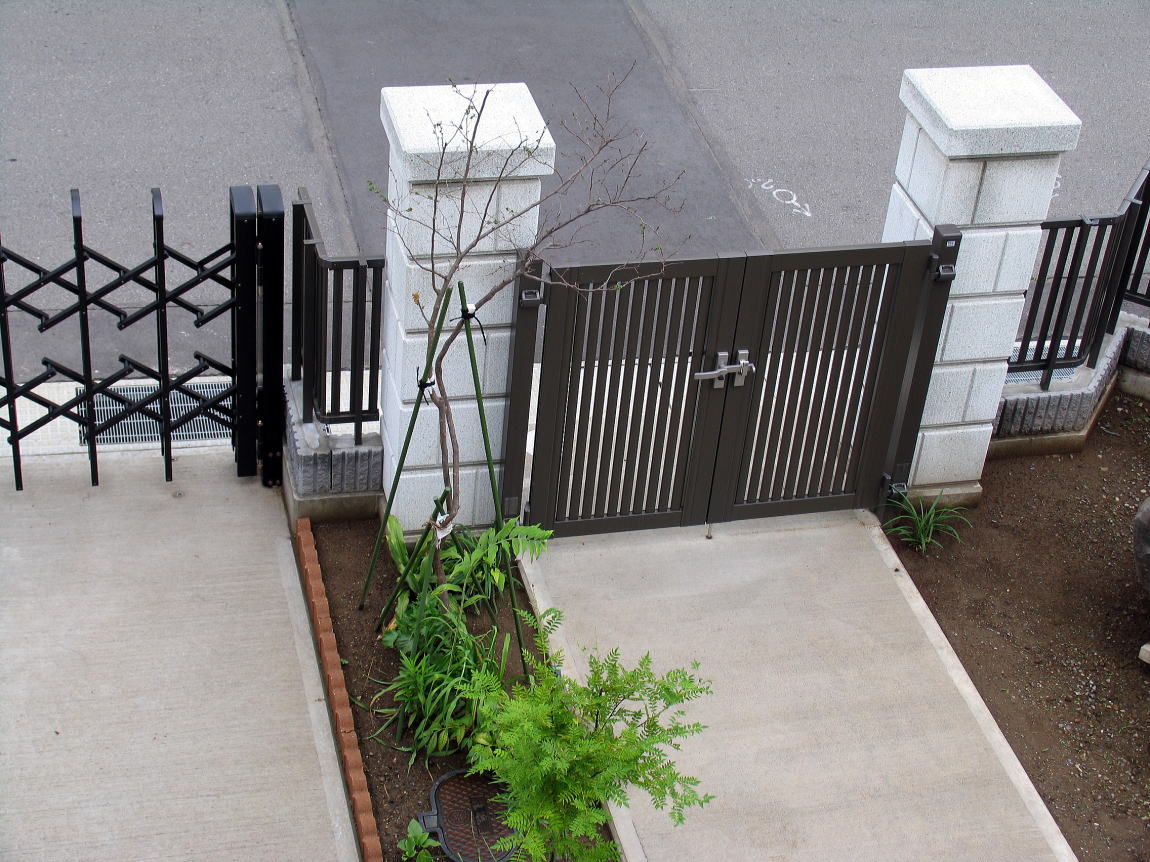 我が家の門、バルコニーから撮影