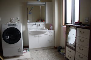 ★なるほど住まい術・・・2011-8/22(月)日経の生活欄の記事より 下着パジャマは洗面所へ・・・水越美枝子 家が散らかってしまうのは、片づけ下手なせいだと自分を責めている人が意外に多い。しかし、片づけがうまくいかない理由は、実は[間取りや収納場所に問題がある]という場合が多々ある。家がどれだけ片づかない造りになっているのかを把握するには、まず生活動線はあなたがどれくらい家の中を歩き回っているか、つまり時間を浪費しているかを測るものさしだ。 たとえば洗濯、「脱いだ物をどこに置くか」「洗濯機から物干し場までの距離は」「洗濯物を取り込んで、たたんでしまうのに、何歩歩くか」---。(脱ぐ)(洗う)(干す)(取り込む)(たたむ)(しまう)という6つの動作を場所が近ければ近いほど洗濯の動線が短くなる。逆に動線がねじれて絡み合うと、同じ洗濯をするにも時間がかかる。ベランダやバルコニーが2階にある場合は1階の洗面所と浴室を2階にするという方法もある。そうすれば移動距離がぐんと縮まり、短時間にできるようになり動線の無駄が省ける。また1階のリビングやダイニングが散らかりにくくなる。 しかし気を付けなければならないこともある。それは生活動線の移動距離が短くなるということは、それを行う人の家内の雑務作業の運動量の低下をまねき、のらりくらりと暮らす人はメタボリックシンドローム(メタボリック症候群)になりかねない。ぼやっと暮らす人は学習能力の低下を招き本来の人間らしさが失われ家庭にめりはりが無くなり、メタボは万病の元と云われている。そうなると家庭内は病人や鬱な家族で生活が脅かされることもある。体を動かさなくなる分だけの食事制限(或いは粗食)をするか、余った時間を利用して長続きする趣味ある運動を心がけなければ動線の無駄をなくしても良い意味においての価値がなくなる。 下着やパジャマが洗面所にあれば、お風呂に入るときに部屋へ取りに行くことなく、洗面所へ直行することができ、動線の無駄がなくなる。翌日、寝室で着替えたパジャマは、洗うに白、もう一度着るにしろ、着替えた部屋に置きっぱなしにせずに、身支度のついでに洗面所のパジャマ置き場へ持っていく。そうすれば今夜も寄り道せずに浴室へ直行できる。衣類の動線を一つの目安に、片づけやすく、住みやすい家を考えてはいかがであろうか。 ★我が家の約5.4畳ほどの洗面所 洗面所内又は洗面所内から、 洗面台+換気扇+物干し+床暖房付き+洗濯機2台+小物収納タンス+お風呂+トイレ