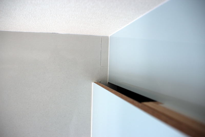正面の天井と壁のL型の所に隙間のような張り方になっている、見苦しい!!!!