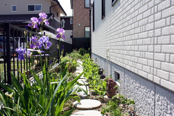 ジャーマンアイリスが美しい裏路地