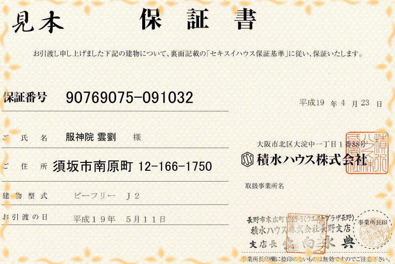 *新築時に渡されたものを一旦積水ハウスに渡して送られてきた
