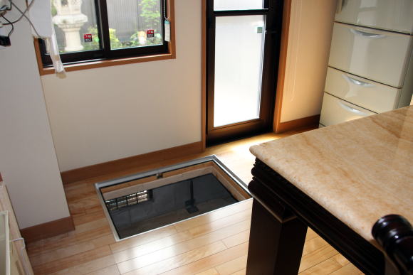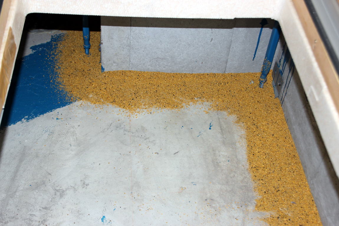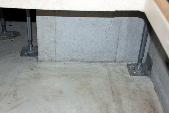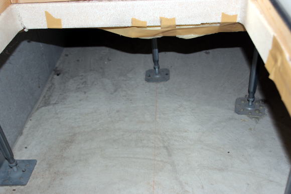 左奥は塗られている 右手前、支え棒にシロアリ予防の青い薬塗られていないヽ(#`Д´#)ノ