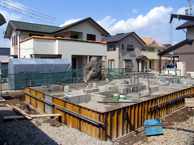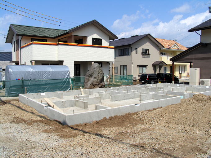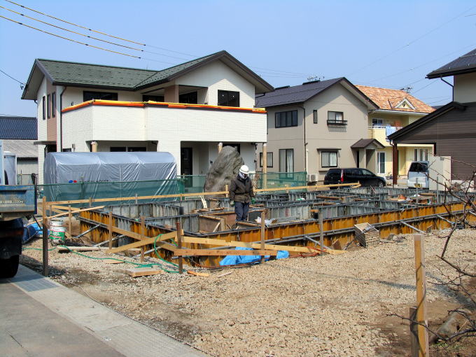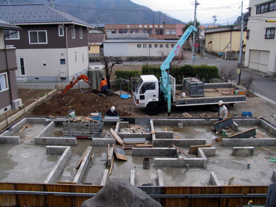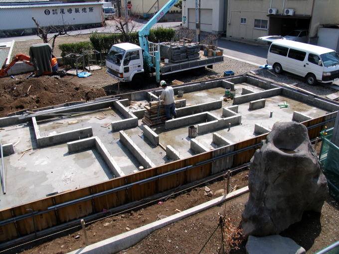 隣家はスカイホーム基礎工事中