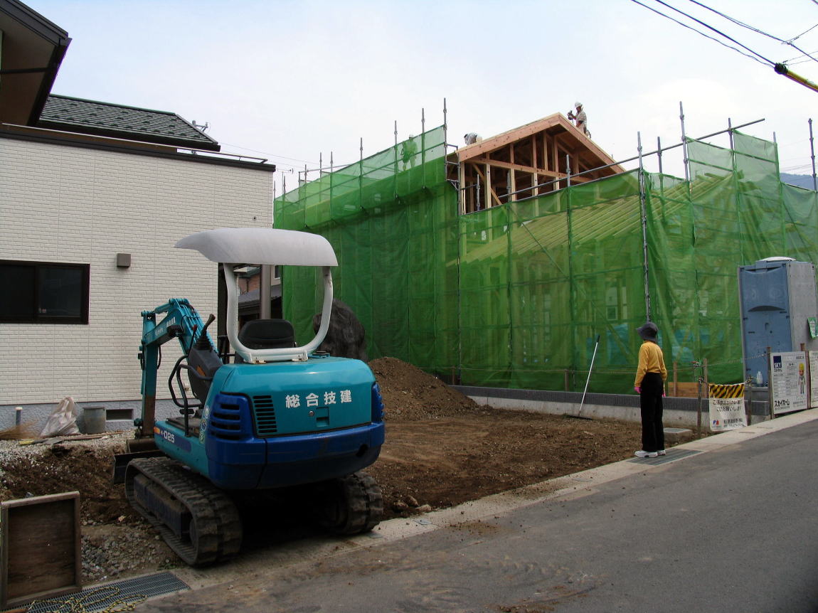 隣家は建て方工事中 ・・・・・妻は新宅と敷地を眺めている・・・・・ |