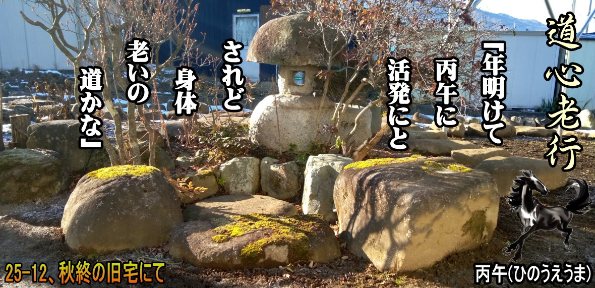 「年明けて 丙午に 活発にと されど身体 老いの道かな」 「元日や 丙午の 思はるる 老年への 杖頼り道」 私事です。令和七年になって株式銘柄売買でフィッシング詐欺が横行して、暗証番号などの設定変更・修正・複雑化。更に私のHPでウイルスバスターから「Webサイトをブロックされました」原因は貧弱なスクリプトエラー。 千ページ以上に表示されました。老いた脳に鞭打って膨大なHPのページの見直し、ソースの変更、修正三昧に明け暮れていました。そんなこともあり、昨年はほとんど山に出かけませんでした。皆さんも詐欺などに騙されないようにしましょう。 2027-01-01