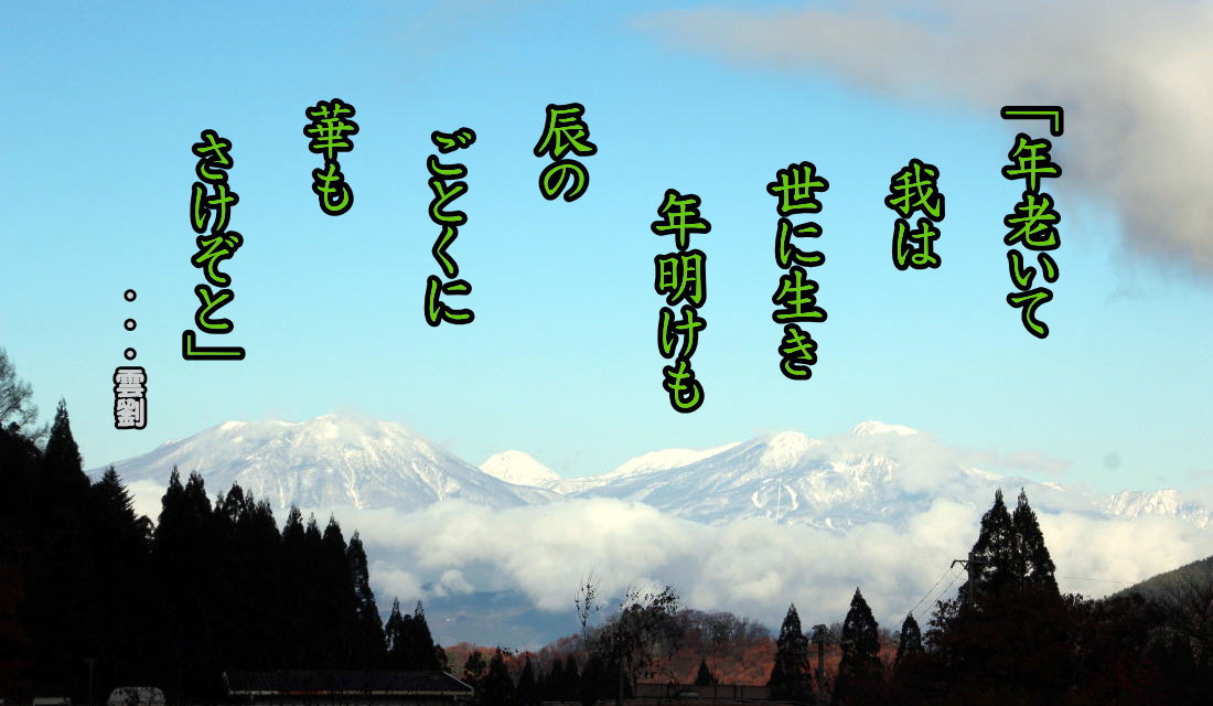 「年老いて我は世に生き 年明けも 辰のごとくに 華もさけぞと」 「あらたまも 老いは追いかけ 華いとく 心待ちして 辰の声かも」 私供は老齢となり身体が弱ってきています。そんな状況でも不健康や困難に不自由から抜け出す方法を甲辰(きのえたつ)に見出して健康に気をつかい前向きに活動的に今年一年を過ごして生きたいと思っています。 2025-01-01