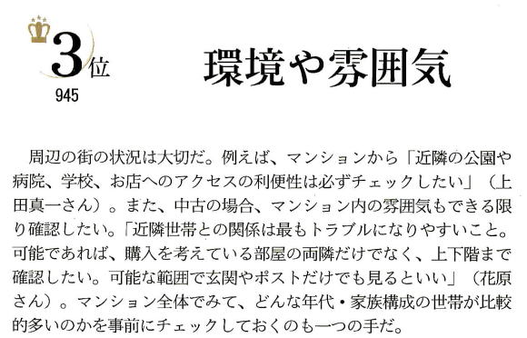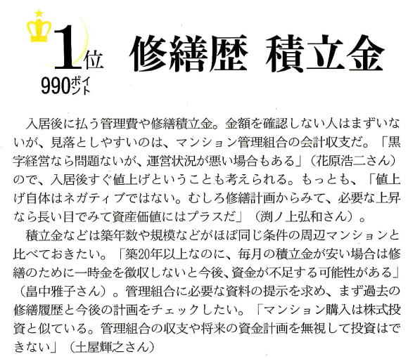 *考察論 若い者は上記の内容は参考にるが高齢者の家はどうすればいいのかな。約800万円もかかるなら、お金をかけずに、そのまま住み続けていた方が良いのではないのかな。お年寄りに『財形住宅貯蓄』なんて年金暮らしに無理というものだ。まして年金でローンなんて絶対にできない人生の先が短いのだ。とは言うものの雨漏りなどが発生したら目もあてられない。さてどうしたら良いのだろうか???。 2021-05-15・・・日経より引用 ◆マンション選びプロはここを見る *在宅勤務の普及で住まいを見直す人が増えている。 *都市部で人気が高まっているのが、中古マンション。 *不動産のプロがマンション選びの注意点を挙げた。