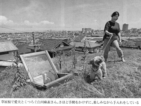 2018-07-29・・・日経より引用 ◆涼を運ぶ草屋根 家の上の箱庭から街を一望 7月中旬、兵庫県西宮市はうだるような暑さに包まれていた。丘の中腹の閑静な住宅街に建つ一軒家。家の前の小さな庭に植えられた木や花が目を和ませてくれる。家の外壁を包み込むように上へ上と伸びている木々の緑を目で追っていくと、一瞬視線が止まった。なんと、屋根の上にもたくさんの草花が生えているのだ。この「草屋根」の家に、夫と2人の子供と一緒に暮らしているのは白川麻衣さん(亜)。「眺めの良い屋根の上にいる時は気持ちが開放されます。斜度も急ではないので、少しも怖くはないですよ」と話す。 3階の部屋に取り付けられたはしごを登って屋根に出る。青空の下に広がる箱庭には、芝生や花、雑草が混じりあって生えていた。素足のまま疎み出すと、ふんわりとした感触が心地よい。屋根の上には気持ちのいい風が吹き、夏の日差しで火照った体を少しだけ冷ましてくれる。坂の途中に建つ家の屋根からは、西宮や大阪の市街地が一望できる。草屋根に寝転び、大阪や芦屋で開催される花火大会を眺めるのが白川家の夏の恒例行事だ。白川さんが草屋根と初めて出合ったのは10年以上前。 大阪府箕面市で偶然見かけた、とある家の屋根に生えるモジャモジャの草が強く印象に残ったという。数年後、自宅を作ろうとしていた時、いろいろと考えた末に草屋根のことを思い出し、箕面の家を設計した建築家に相談した。その後、約3年かけて土地を探し回り、今の場所に巡り合って、購入を決めた。抜群の景色が見渡せる立地だからこそ、草屋根の魅力を最大限にいかすことできるからだ。草屋根の最大の利点は、すぐれた断熱効果にある。通常の屋根の場合、温度は最高で60度にもなるが、草屋根だと35度以上にならない。 屋根の上に生える植物が水蒸気を出すと、気化熱によって温度が下がるため、屋根の下の部屋でもそれほど暑くならないのだ。さらに、草屋根に水をまけば、その水が蒸発することで家を冷やすことができる。「草屋根の手入れは思った以上に簡単」と白川さんは話す。芝生だけの草屋根を作ろうとすれば雑草抜きなどの作業が必要だが、「手入れされすぎていな、い感じが好き」なので、あまり手をかけず、自然にまかせている。コスモスも一度種をまいたら、その後は毎年自然に生えてくる。ただし、白川さんは大好きなチューリップだけは、毎年冬に100個もの球根を植えている。 春になると、色とりどりのチューリップの花が屋根の縁を彩る。家に帰った際、屋根に新しく花が咲いているのを発見するたびに「心が躍る」という。もっとも、中学生になった子供たちは、興奮する母を横目に、少し冷ややかに「チューリップ咲いて本当によかったねー」と反応するのだとか。子供たちが小学生の頃は、家族みんなで草屋根に出て、おにぎりや豚汁を食べてピクニック気分を味わうこともあったが、最近は機会が減っている。それでも、白川さんはいつか彼らが大人になって、日常にささやかな幸せを運んでくれる草屋根をいとおしく思う日が来ることを信じている。ライター 森川幹人井上昭義撮影
