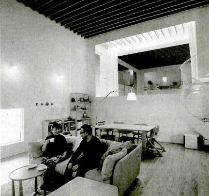 2019-01-13・・・日経より引用 ◆雪原にとけ込む家 斬新さ追求・まるで貯水施設 いったいあれはなにを建てているのか。田んぼの中に形を現しはじめた倉庫のような建物をみて、地元の人は不思議がった。水道局の施設だと思った人もいた。完成後は、しばしば前で車がとまった。それほど個性的で目立つ建物だった。が、雪の季節になると、まるで保護色を利用した生き物のように雪景色の中に隠れてしまう。北海道旭州市の郊外の水田地帯に7年ほど前にぽつんと建った異色の住宅は、いまではすっかり風景になじんでいる。「個性的で、北海道らしくボリューム感があって、風景になじむ家を建てたい」。この家の主、杉本啓維さん(よしまさ・45)が設計前に建築家に伝えた要点である。旭川家具工業協同組合の仕事をする杉本さんは、デザインや建築に関心をもっていた。家も、建てるならありきたりではない斬新な家をと決めていた。 あるとき、住宅雑誌に紹介された、箱をずらして並べたようなデザインの住宅を見て、既成の概念にとらわれない感覚に目を見張った。これが強く印象に残っていて、子供が生まれ、家を建てようと思ったとき、この斬新な家を設計した五十嵐浄さんに依頼することにした。自分の建築を気に入ってくれた建築家にとって、施主はあれこれ細かな注文をつけるよりも、理想とする住まいの概念を示してくれることがありがたい。理想をどう形に落とし込むかば建築家の裁量であり、腕の見せどころだからだ この点、杉本さんからまずは理想を聞かされた五十嵐さんは案を練った。そして最終的に出てきたアイデアが、丸みを帯びた、一見すると貯水施設のような建屋だった。 おもしろい。杉本さんはそう思った。ガーデナーでもある杉本さんの妻、砂由紀さん(44)も「外観からは中が想像できない。おもしろそう」と、興味を示した。完成した建物は、上から見ると楕円形の缶詰のようで、板を張り重ねて外壁を形作っている。五十嵐さんが名付けたようにまさに貯蔵庫。窓はポッンポッンと壁に小さな穴があいたように点在するだけ。しかし、内部は天井の高さが4・7㍍。空間の区切り方は大胆で、杉本さんが期待していたボリューム感は十分だった。加えて、住む人間を守ってくれるような包容力があった。水田と牧草地に囲まれた150坪の敷地に建ちあがった建築面腰65坪の家は、道路に沿って南北に長いが、角がなく丸みを帯びている。 田園の景観に馴染み、雪の吹きだまりをできにくくし、またコストも抑えられるという設計上の配慮からだ。電気を引き込むための電信柱は、あえて木製とし、電線は地中から屋内に通すようにした。これも景観を重視してのことだ。一方、室内はハリビング側と、寝室などプライベートな側に大きく分かれているが、一つの空間といっていいほど、はっきりとは仕切られていない。この空間を生かすため、内壁に沿って出っ張る形で大きな棚のようなフロアができ、部屋のようになっている。ここにあがっていくには螺旋階段をつかう。家族は、杉本さん夫妻と10歳と8歳の二男の4人。「家族は、この空間の中で自分の好きな場所を見つけて楽しんでいます。 子供部屋はないですが、将来いくらでもリフォ」ムできますから」と、杉本さんは言う。小さく見えた窓だが、l㍍四方が6つあり、思いのほか風が通る。明るさの面では、天井に大きく設けたトップライトから柔らかな光が十分差し込む。今、窓の外は一面の白だが、雪が解けてしばらくすると景色は一変する。「牧草の線が一面に広がるのが見えます。また、秋になると田んぼが、黄金色の稲穂で埋まります二番きれいなのは、苗を植える前、田んぼの水面が光って見えるところでしょうか」。杉本さんが満足げにそう話すと、傍らで砂由紀さんがうなずいた。ジャーナリスト 川井龍介山口朋秀撮影