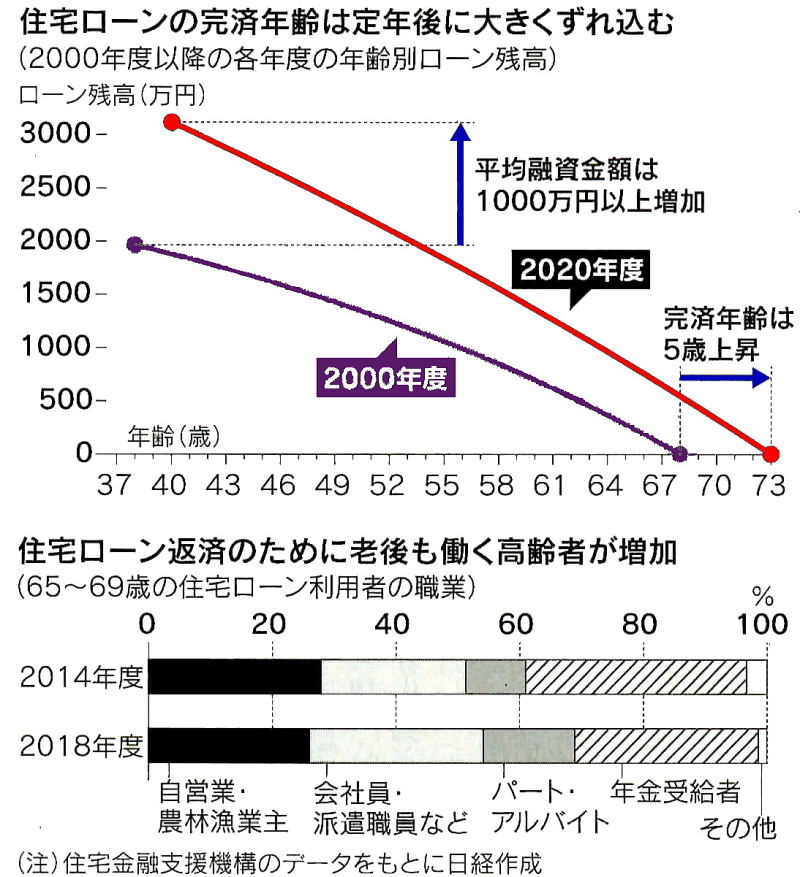 2020-010-05・・・日経より引用 ◆住宅ローン完済年齢上昇、平均73歳年金生活不安定に