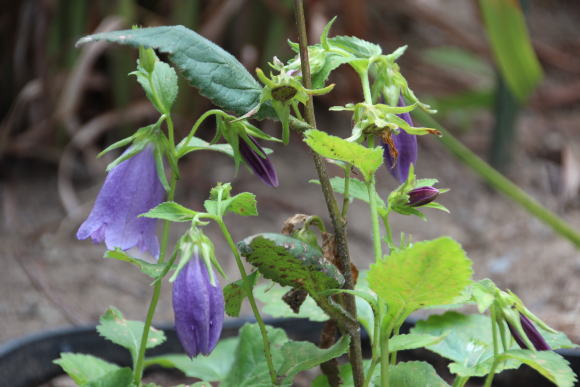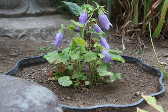 須坂市八町へウオーキングしていたら丸山さん託の石庭園に「青のホタルブクロの花」が咲いていた。とても気にいったので後日もらいに参上した。奥さんが快くおすそ分けしてくださった。早速持ち帰って植えた。私は来年から咲くのかと思っていた、それから一カ月した下の写真のように美しく咲いたのです。