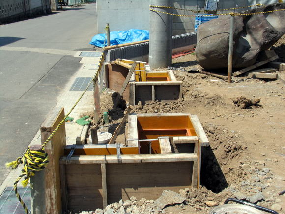 朝から花冷えがして時々小雨が降っていたが、午後には雨も止んで自宅から歩いて新築中の我が家に着いたら、カーポートの組み立てが行なわれていたが、カーポートの柱を目線で見たら僅かに垂直でなかった。どうするのかなと思って当たりを歩きながら見学していたら柱を埋める穴に(1ケ所の穴が片方に寄っていたが許せる範囲なのかな)生コンクリートを流し込む前に垂直の見直しをしていた。