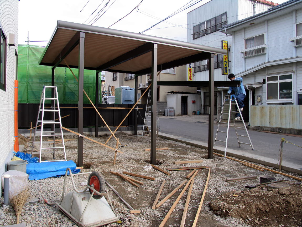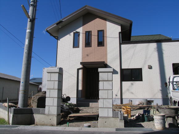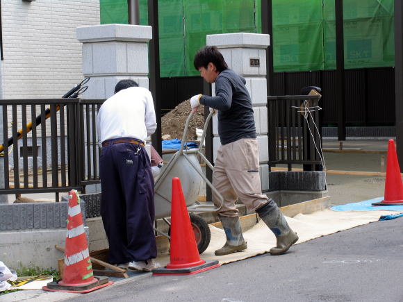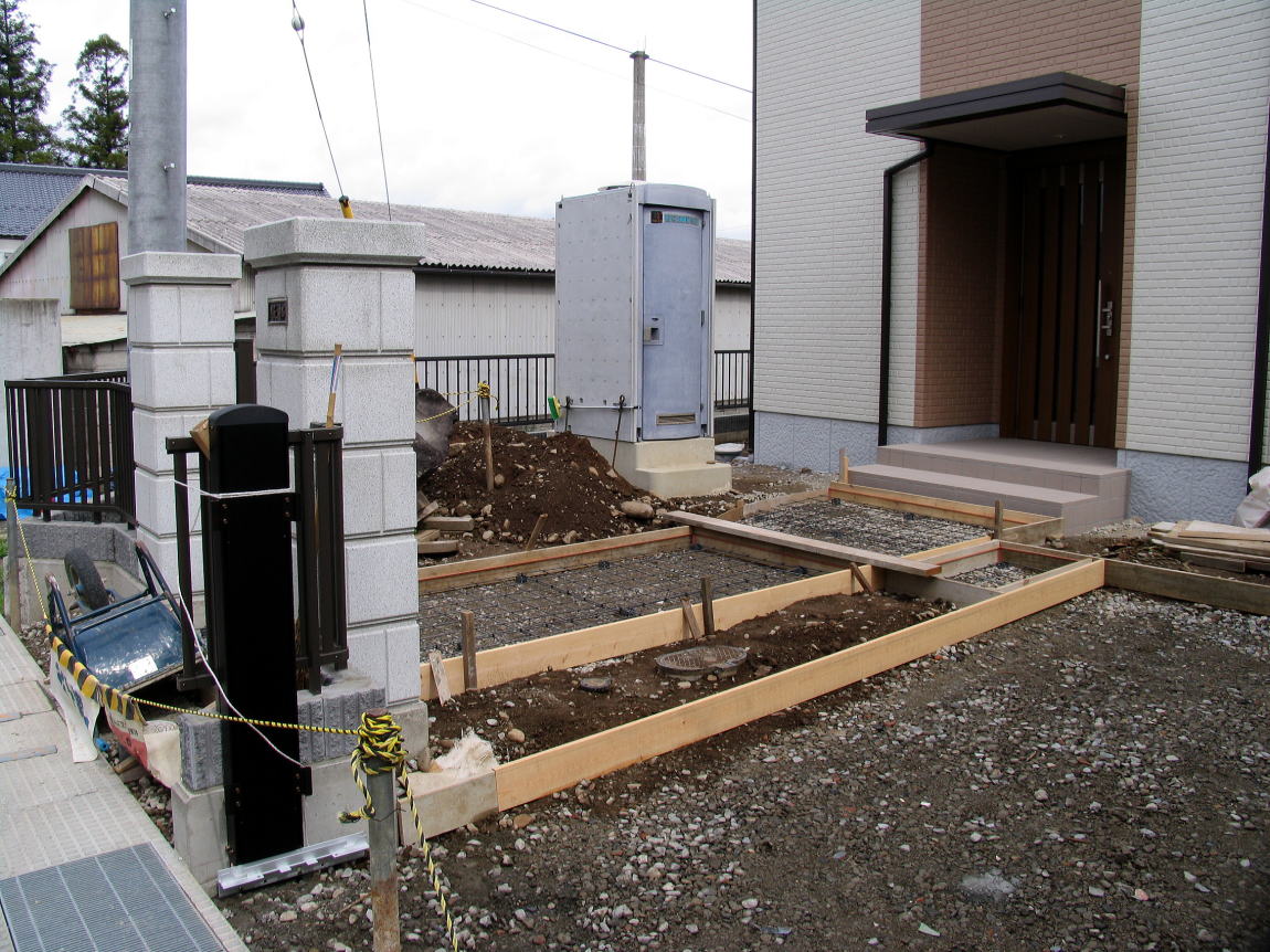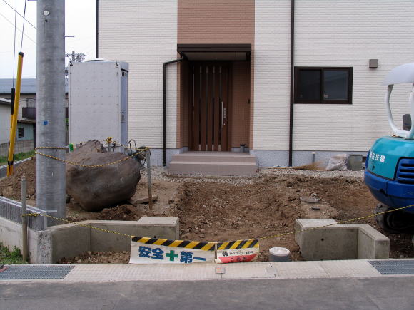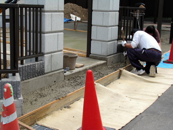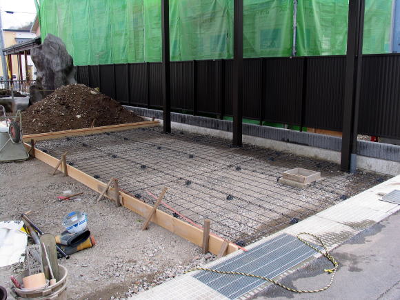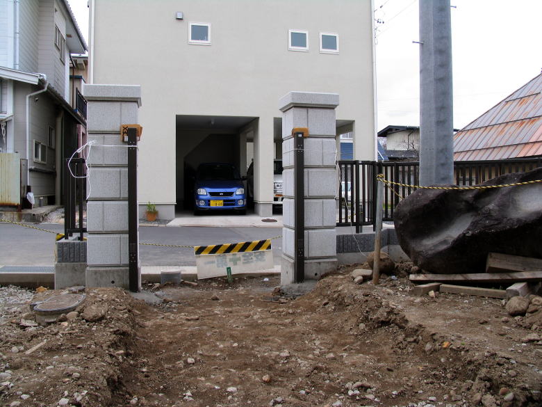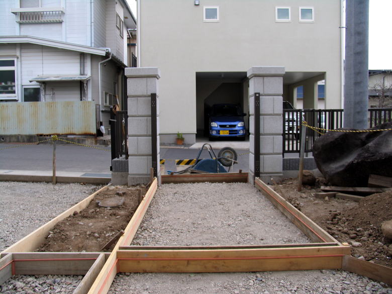 4/9からは、我が家の顔を引き締めの役目をする外構工事(門・扉・フェンス・カーポート・駐車場舗装3台分・玄関・アプローチ・等)が始まる。