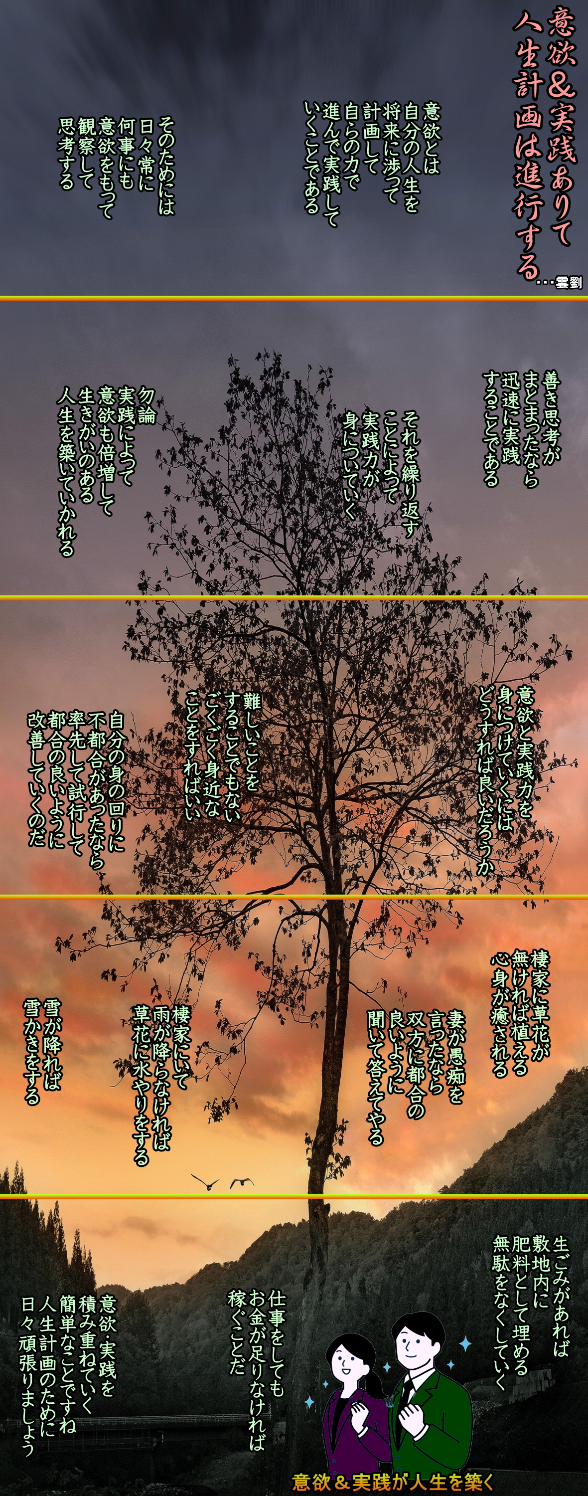 ・・・檜谷昭彦訳・解説「福沢諭吉・学問のすすめ」より ◆引きこもるな、積極的に交際せよ *引きこもりは人生の無駄遣いである 元来、人は他人との交際を喜ぶものだが、習慣次第では、交際を嫌う者も出てくる。世の中には変わった人間もいて、わざわざ山野に移り住んで、他人との交際を避けている者がある。これを隠者という。これほど極端でなくても、世間とのつき合いを嫌い、家にこもり、「俗塵を避けるのだ」と得意になっている者もないわけではない。 こうした連中の姿勢は、政府の政策に対する反発だけがその原因ではあるまい。意志が薄弱なために、物事と関わりを持つ勇気がなく、度量が狭いために、包容力に欠けるのである。人を受け入れることができないから、人もまた自分を受け入れてくれず、互いに一歩ずつ避け合っていき、ついには異類の者を見るような思いを持つ。のちには、敵同士のようになり、互いが互いを怨望することになる。このうえない不幸だといえるだろう。 また相手の人物をろくに知ろうともせずに、その言動をはたから伝え聞いただけで、自分の意見と違うときは、相手を思いやる同情心もなく、勝手を思いこみで忌み嫌う。これもその人の天性と、後天的な習慣によるところが大きい。物事を相談するとき、伝言や文通だけではまとまらないことも、実際に会って話し合えばうまく収まることがある。人はよく、「実はこういうわけだけれども、面と向かっては、まさかそんなふうにも」という。 これは人間の純粋な心情であり、相手を思いやる気くばりの一つだ。この感情が生まれるとき、まごころは通じ合い、怨望嫉妬の悪徳は消えてなくなるのである。古今に暗殺の例は数多いが、わたしは常々、こういっている。 「もし殺す側と殺される側と、両者が数日間同じ場所に起居し、互いにつつみ隠さず、その考えを話し合う機会を持ったら、どんな仇敵であろうとも、必ず和解し、そればかりか、無二の親友となることもあるだろう」と。これを思うに、言論や行動の自由を妨害するというのは、なにも政府だけに限った悪弊ではなく、民間にもはびこるものであり、学者の場合もまた例外ではない。 人生をいきいきと生きる活力は、事物に接しなければ生まれにくい。そうした交際のなかで、自由にものをいい、自由に働き、富貴も貧賎も、それは本人自身が選びとった結果であるようにすべきだ。ほかからその自由を妨げてはならぬのである。(明治七年十二月出版)